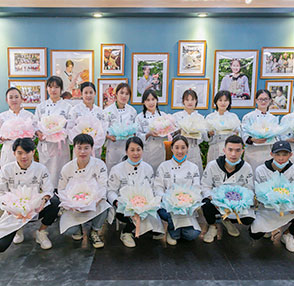 TEACHER FORCE廣西西米食品有限公司-辛緹西點匯聚了一批富有創造力的烘焙大師。從業經驗豐富,技藝精湛,善于創新,富有朝氣,充滿感染力,每一個標簽都體現了我們為人師表的高要求高標準。我們團隊來自于連鎖蛋糕店主管,五星級酒店甜品總監,美國Wilton認證西點師,國家認證高級西點師,英國PME翻糖認證師,以及眾多參賽獲獎經驗豐富的西點大師。
